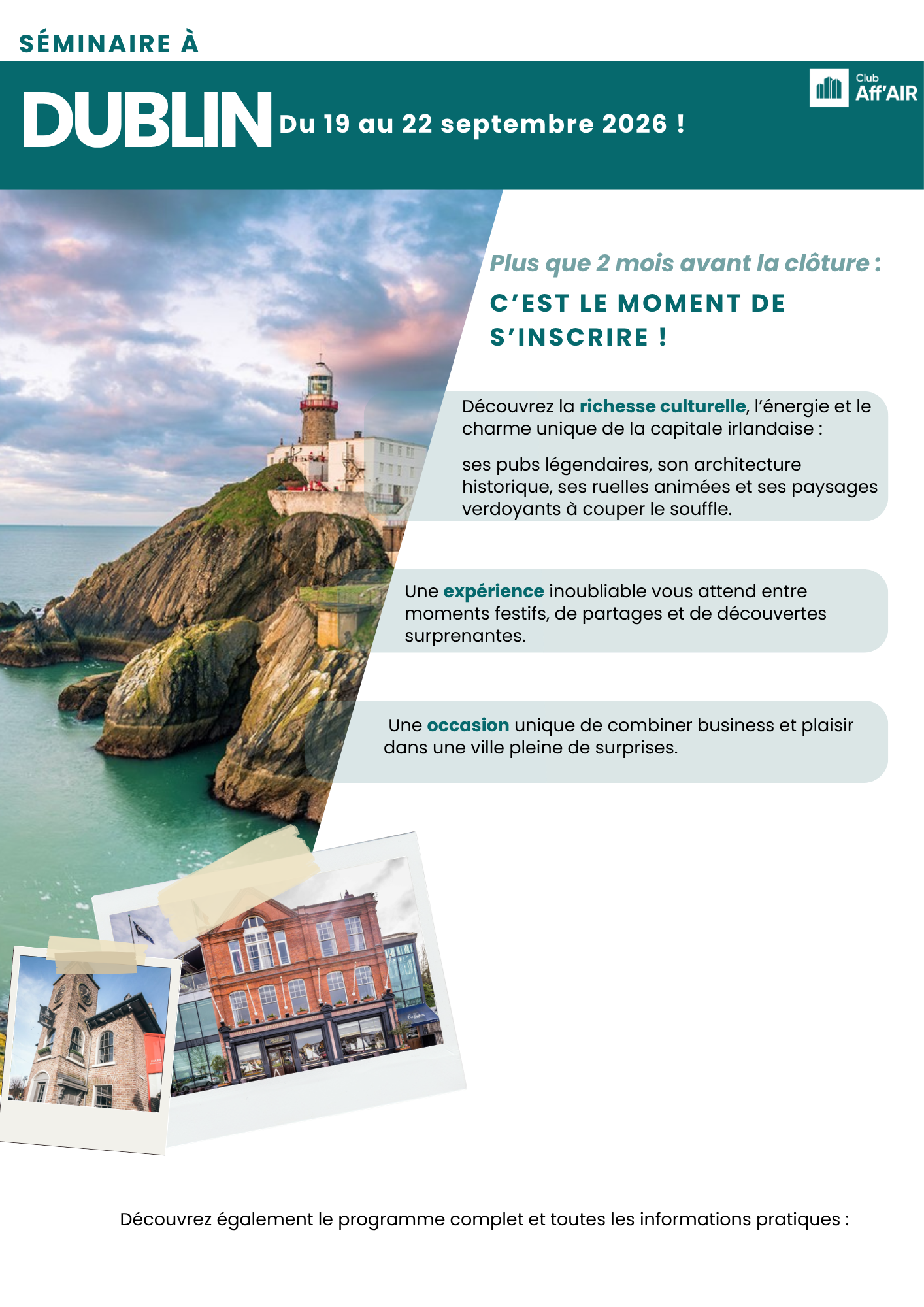 Réservez vite votre place et préparez-vous à vivre un séminaire mémorable à Dublin !